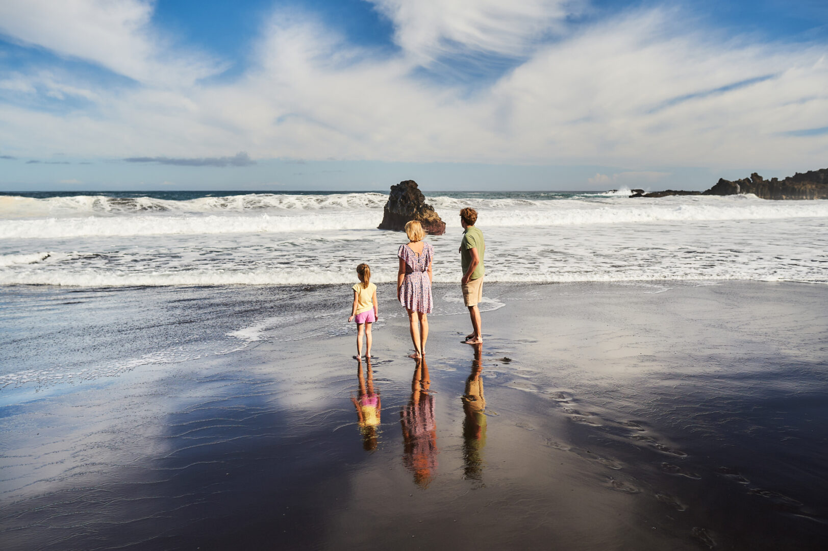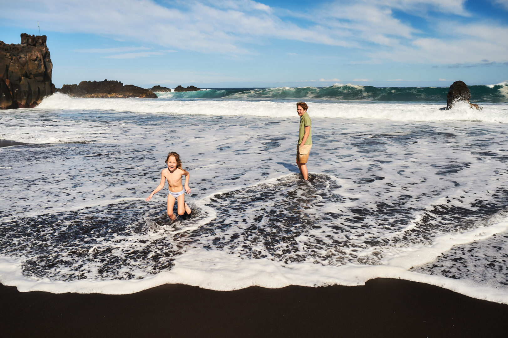 Kolejne miejsce to naturalna plaża z czarnym pisakiem ukryte między plantacjami bananowców Beach Bollullo. W oddali widać Puerto de la Cruz.
